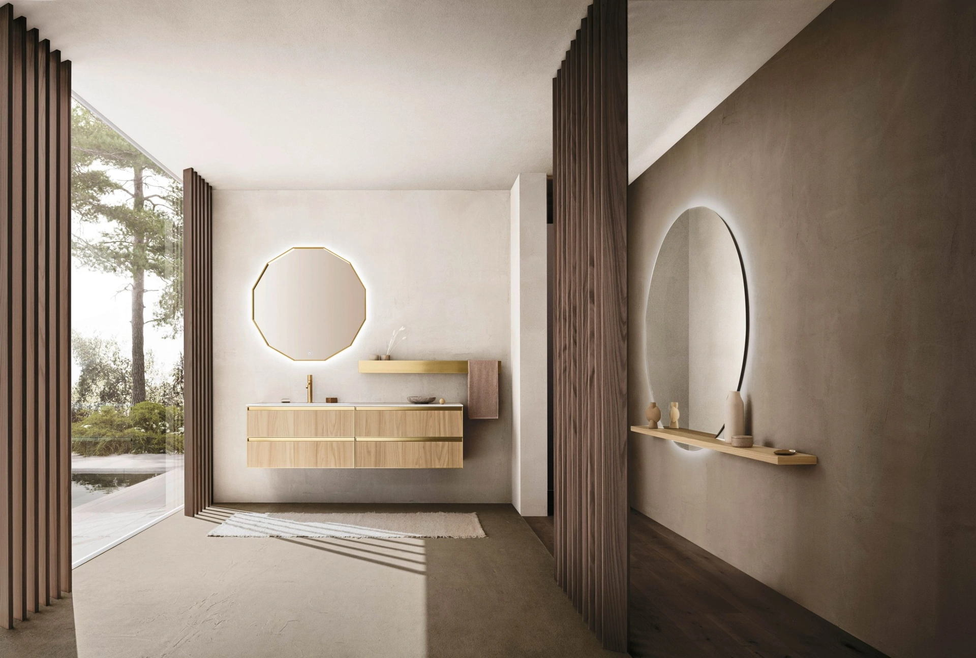 mobili bagno sospesi in legno della firma Arbi: clicca e scopri l'arredo bagno design Absolute 48 per il bagno di casa.