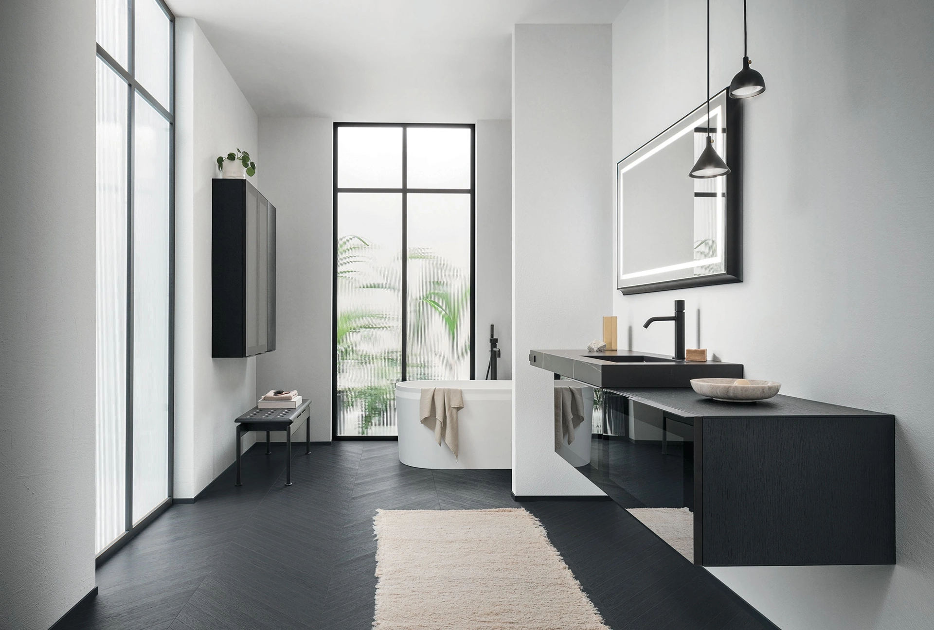 Arreda il bagno di casa design perfettamente con Sky Liscio 10, mobili bagno sospesi e oggetti in vetro di Arbi.