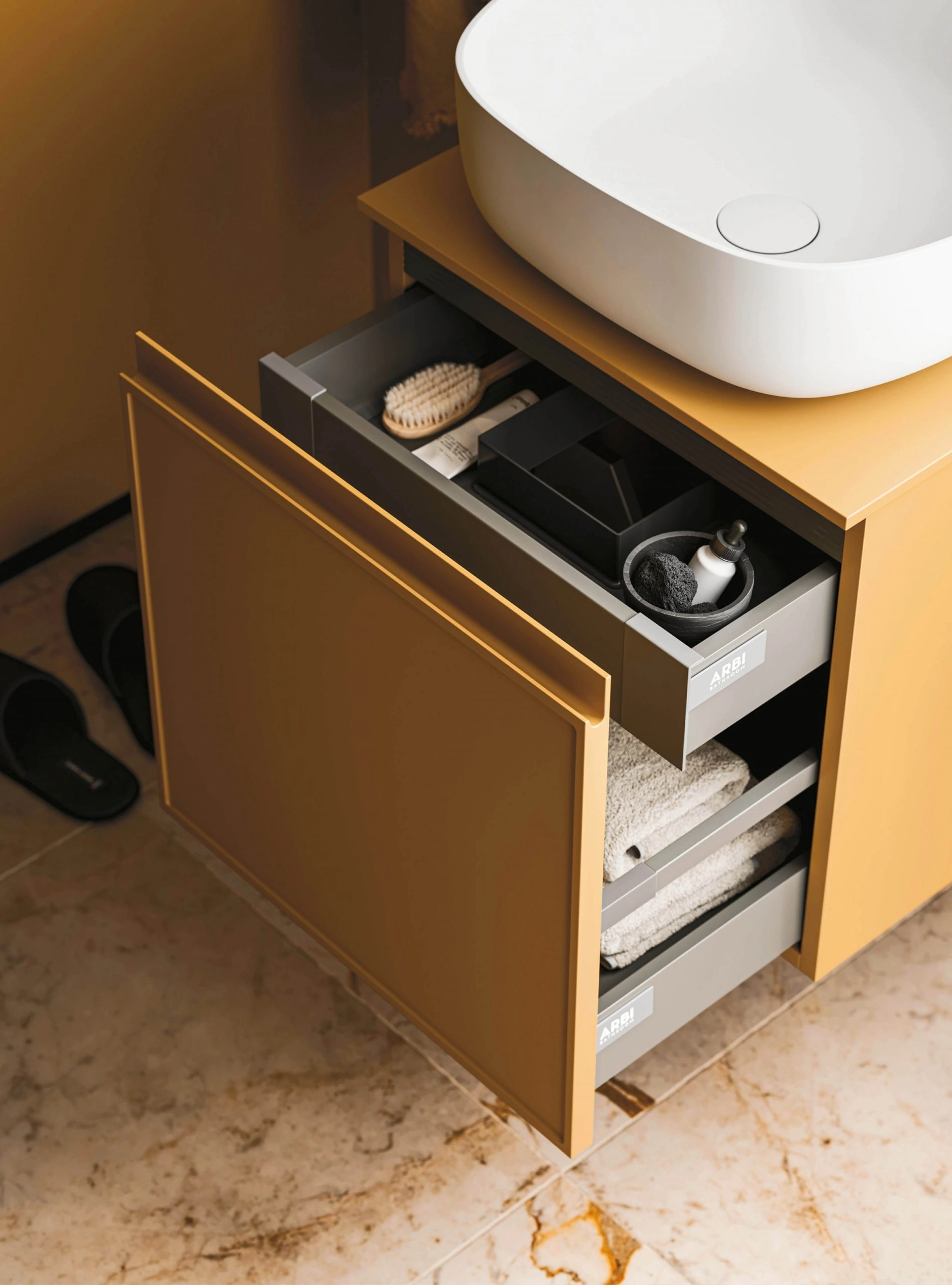 Mobile da Bagno sospeso Decor Cozy yellow di Arbi: clicca e scopri di più su mobili bagno sospesi in laccato opaco e accessori della firma.