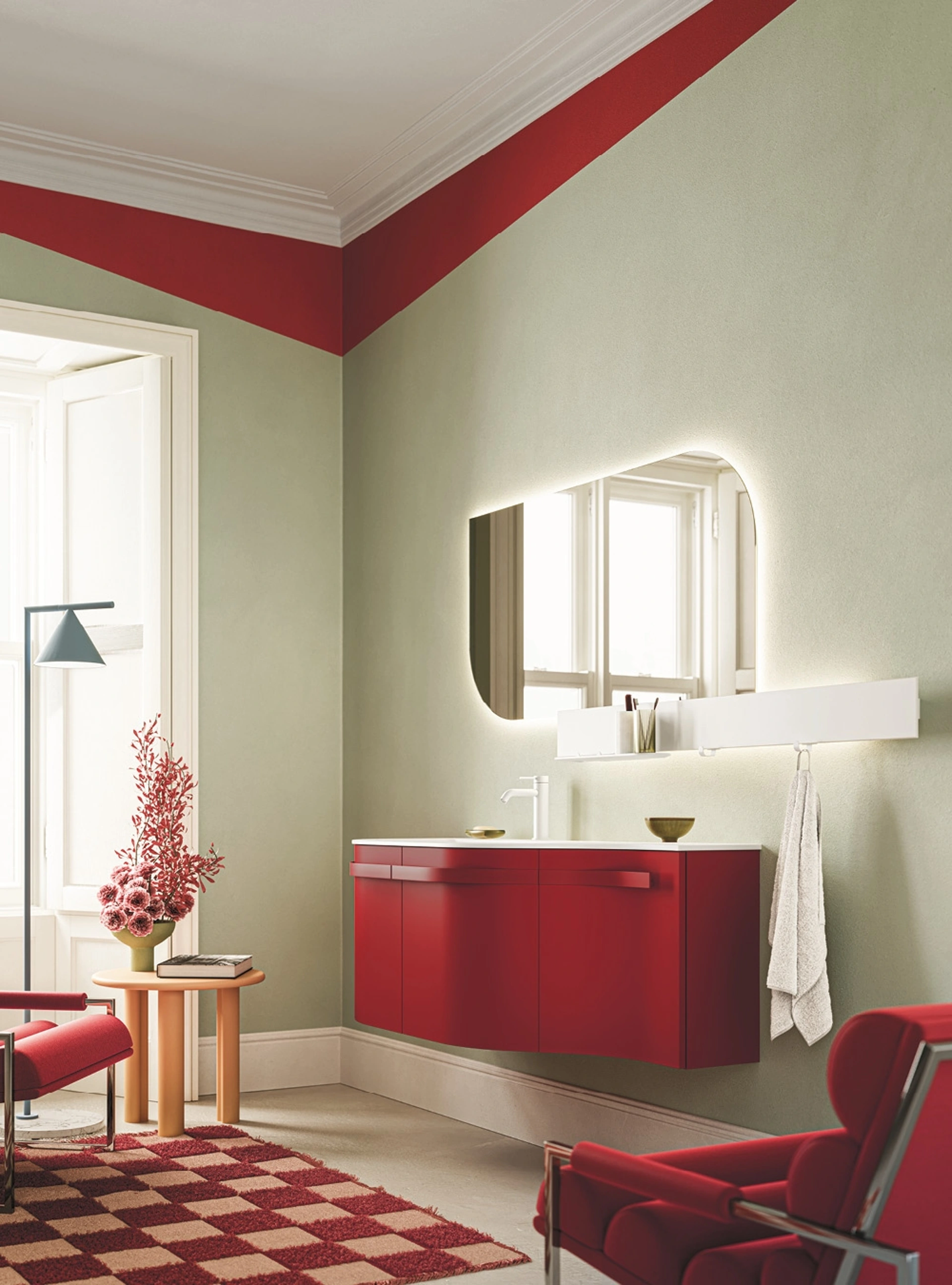 Arreda il bagno di casa moderno alla perfezione con Fusion Moby 46, mobili bagno sospesi e oggetti in laccato opaco di Arbi.