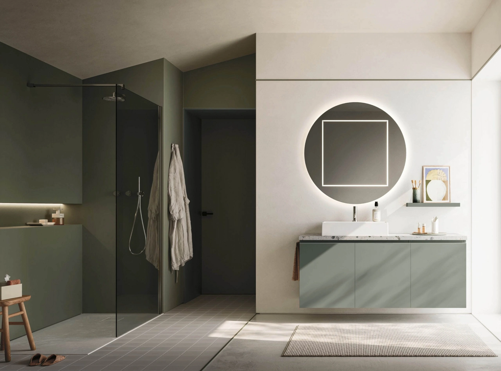 mobili bagno sospesi in melaminico della marca Arbi: clicca e scopri l'arredo bagno moderno Ho-me plus 45 25 per la stanza del benessere.
