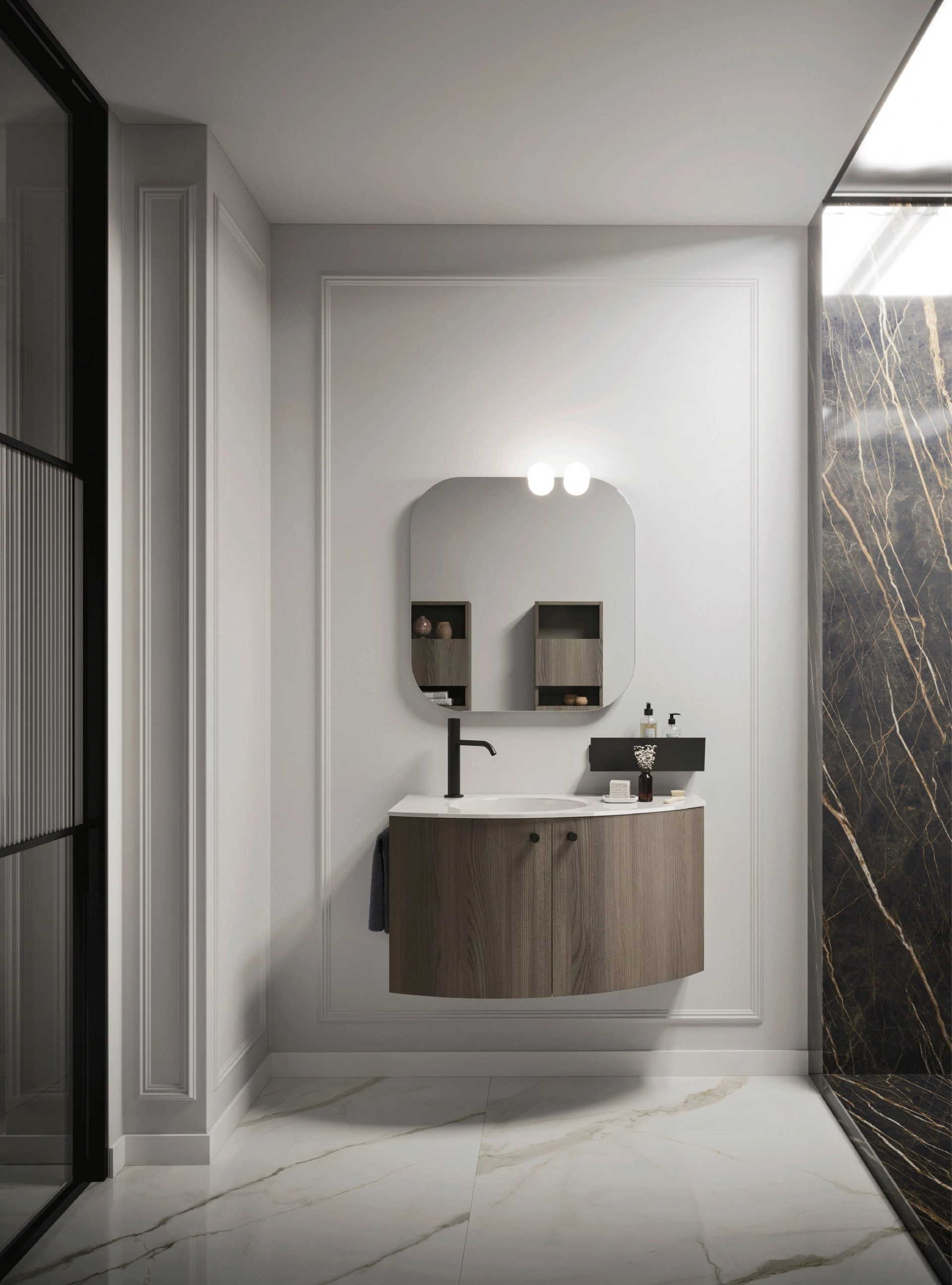 mobili bagno sospesi Ho-me plus curvo 46 di Arbi: scopri l'Arredo Bagno in melaminico moderno e arreda la stanza del benessere.
