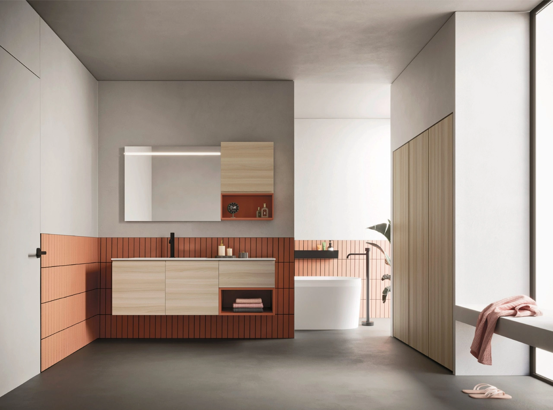 mobili bagno sospesi in melaminico del marchio Arbi: clicca e scopri l'arredo bagno moderno Ho-me plus J 52 per il tuo bagno.