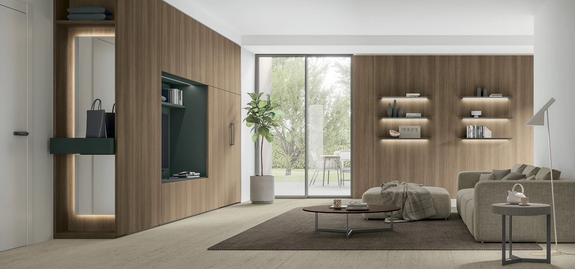 Un po’ librerie, un po’ mobili contenitori ed espositori: le Pareti Attrezzate sono ideali per organizzare un luogo pratico e dinamico. Questa soluzione costituisce tutta la qualità che il brand garantisce grazie a pluriennale competenza e grande dedizione nel campo dell'arredo e del design. Se cerchi arredi salvaspazio e realizzabili su misura, contattaci e ottieni informazioni sull'Arredamento Casa dei migliori brand. Anche in un living non generoso, questo tipo di arredo riesce a organizzare al meglio gli spazi ottimizzando ogni angolo e assicurando componibilità su misura tipica delle soluzioni moderne.