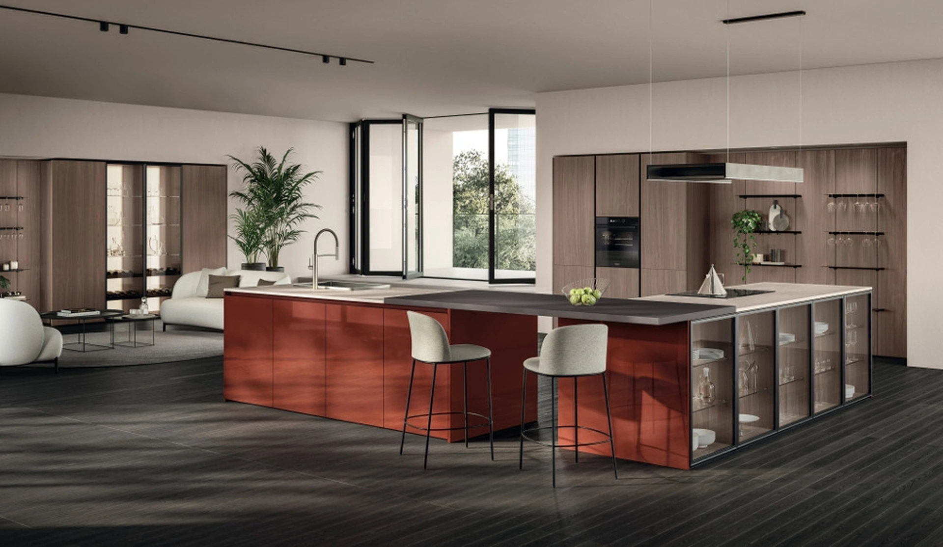 Clicca e scopri un mondo di Cucine Moderne con isola: la cucina Essenza 03 Scavolini in laccato lucido ti sta aspettando!